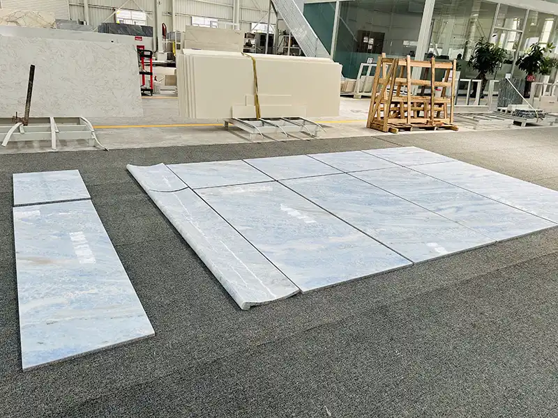 Vi har brugt Calcite Azul Extra Marmor på WOW Stone i lang tid. Vi ved, hvordan man får mest muligt ud af dette materiale. Vi gør det hele internt, fra at få materialet og skære det til polering af det og emballering af det. Det er forbedret kvalitetskontrol, mere tilpassede muligheder og en mere personlig oplevelse.