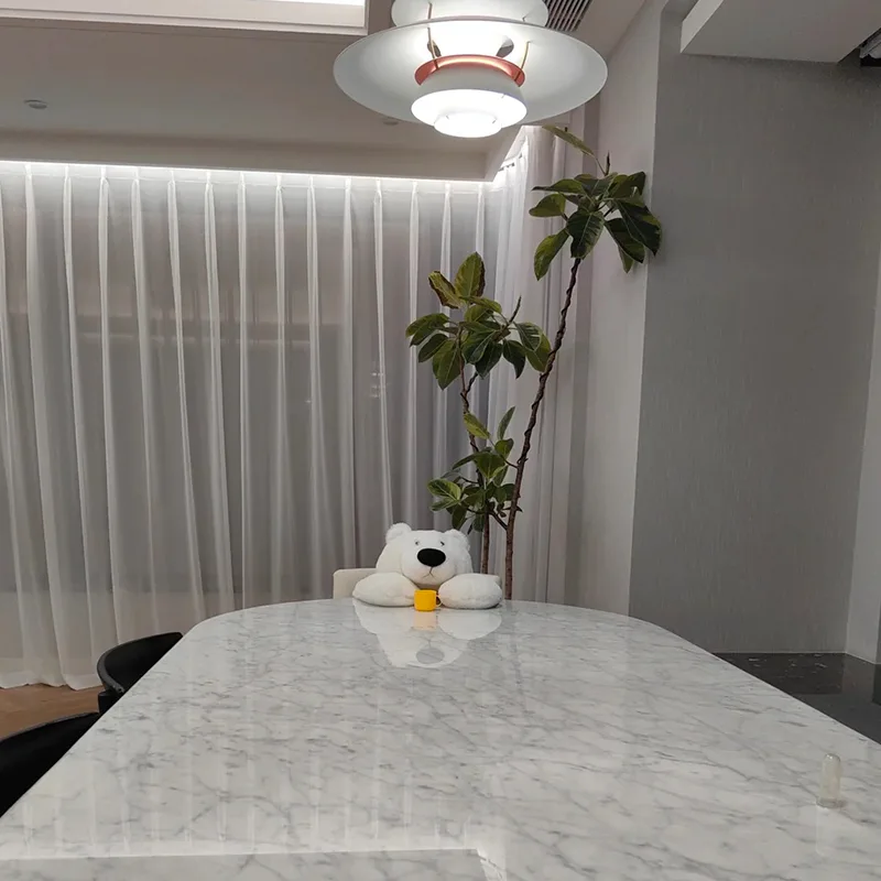 Dette materiale tilpasser sig let på tværs af formater og værelser, uanset om du vil have en Carrara marmor forfængelighed top, rund marmor sofabord eller hvid marmor spisebord.
