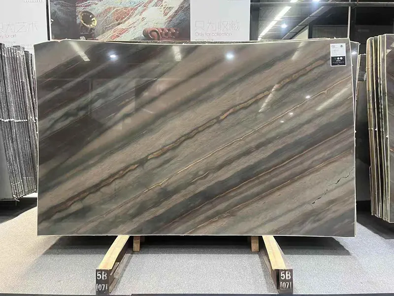 Uanset om dit badeværelse er rolig og spa-lignende eller dit køkken er levende, kan denne brune kvartsitplade være den hemmelige komponent, der forbinder dit design. Blandt de mest klassiske og tiltalende naturlige kvartsitplader, der er tilgængelige i dag, er bestemt denne.