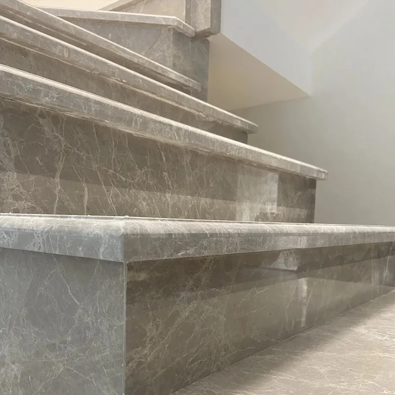 En marmortrappe lavet med moderne grå marmorplade er en af de mest dramatiske ting, du kan gøre. Den konsistente vene og raffinerede farve gør den perfekt til at afgive en erklæring trappe i hjem og virksomheder.