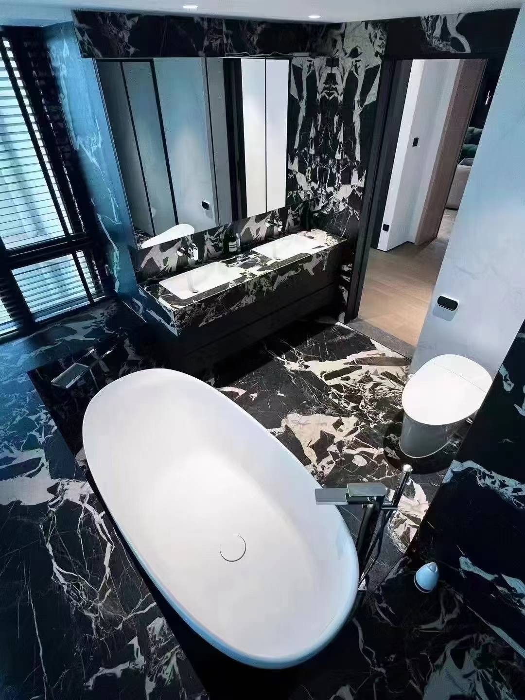 Sort marmor er også meget efterspurgt på grund af sin glansfarve, blank finish og designfleksibilitet.Sort marmorKan parres med anden sten for at skabe et lagdelt og struktureret look og kan bruges med en uendelig liste over designmuligheder. Det bringer øjeblikkelig elegance til et produkt, der spænder fra et sort marmor sofabord i en stue til sort marmorvægfliser i et badeværelse.