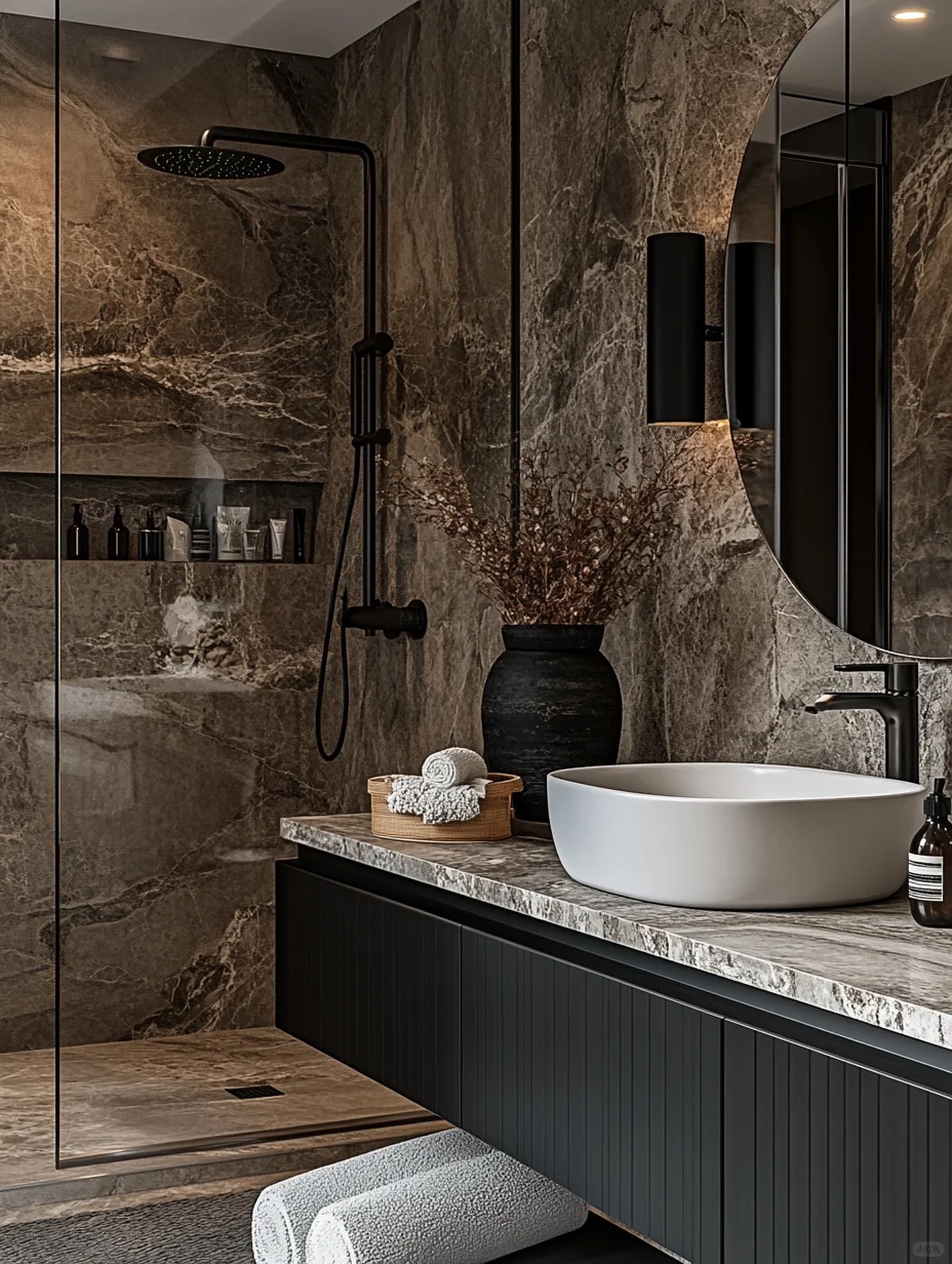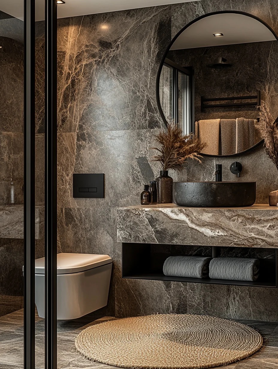 Valgene til sort badeværelsessten er lige så omfattende og magtfulde.