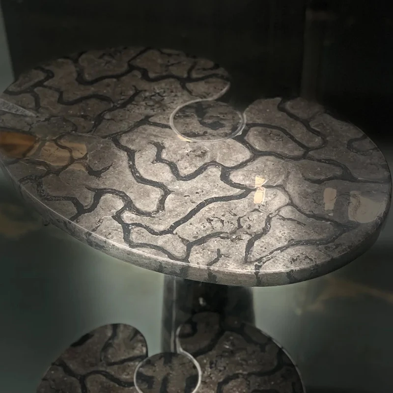 Værelsets midtpunkt er et naturligt marmor sofabord eller et sort marmor sofabord.