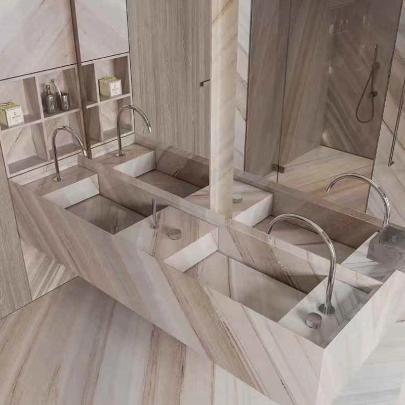 Palissandro Bianco er en drøm for marmor badeværelsesfliser, forfængeligheder og backsplashes. Det øger lyset, derfor lyser og åbner mindre badeværelser. På grund af stenens modstand mod fugtighed og fugt er det et bestseller valg for marmor forfængelighedstoppe, italienske marmorgulve i badeværelser og hvide fliser i brusere.