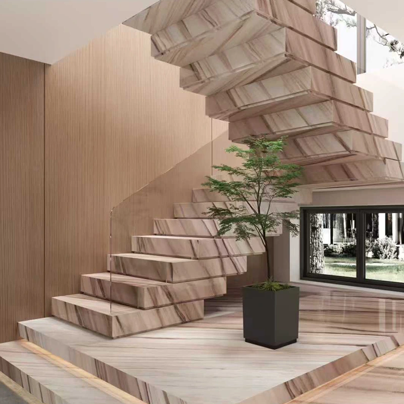 Palissandro Classico marmorklædte grand trapper kan gøre et hus til en villa. Visuel harmoni produceres af de blide grå årer, der løber fra det ene trin til det næste. Italiensk marmorpejs omgiver i Palissandro Bianco er et sofistikeret valg for komfortable opholdssteder.