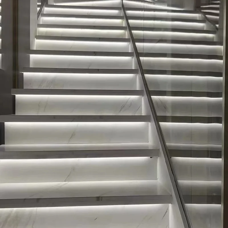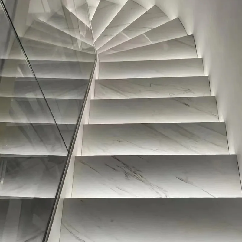 Trapper er en brug, der virkelig viser, hvad Polaris marmor kan gøre. Polaris Marbles konsekvente farve og naturlige polering giver trapper et storslået og glat look. Kun natursten kan give hvert trin en stille, elegant glød. Når udseendet er parret med et hvidt marmorgulv eller hvide marmorgulvfliser, der matcher, er udseendet meget glat.