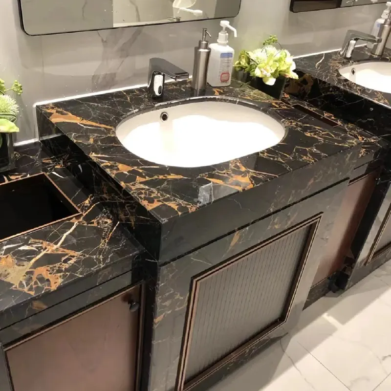 Hvis du vil have et avanceret spa-look, er Portoro Gold Marble et godt valg. Designere bruger det ofte til sorte marmor badeværelsesfamilier, sort marmor badeværelse tilbehør eller hele sorte marmorbeklædninger. Guld og sort sammen gør en rolig, men luksuriøs plads.